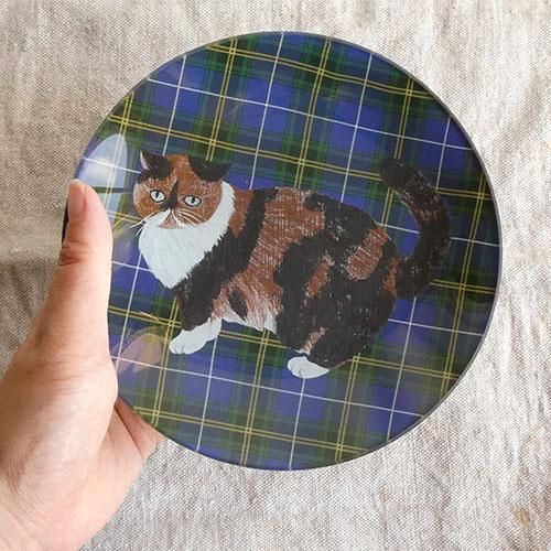 松尾ミユキさんのネコ柄ガラスプレートです。